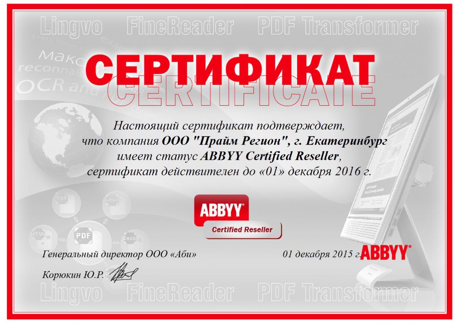 ООО «Прайм Регион» имеет статус ABBYY Certified Reseller